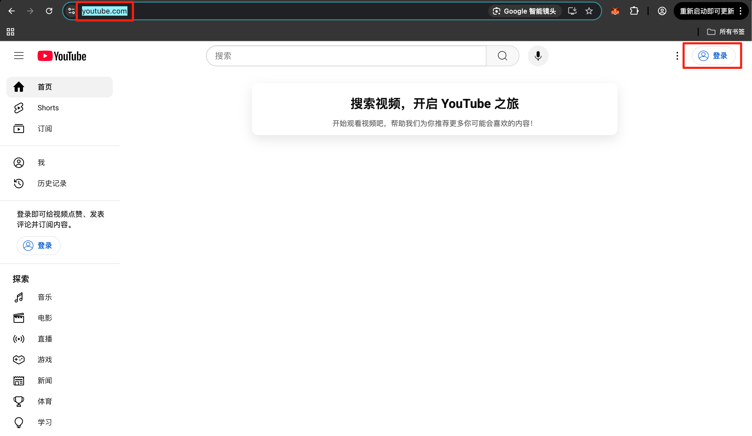 1.复制油管网站到浏览器打开:https://www.youtube.com/,然后点击右上角的登录